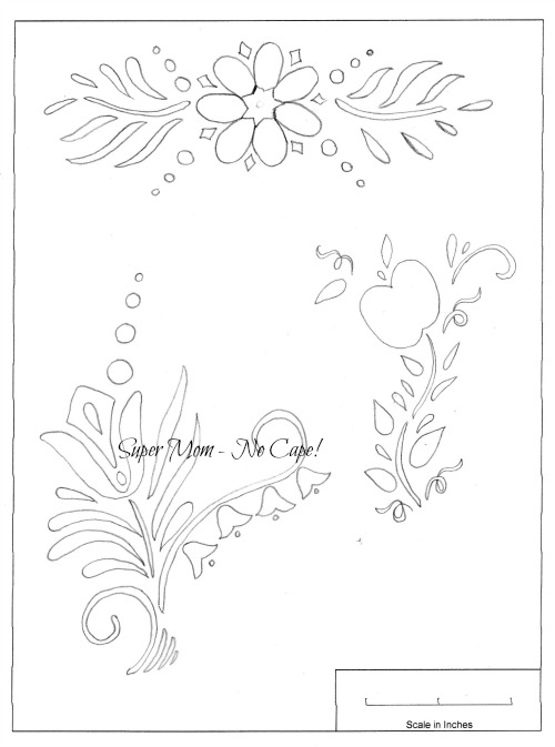 If you’re looking for a change of pace now that Christmas is over and we prepare for the New Year these folk art flowers could be embroidered in satin stitch in bright colors onto a dark background. The pattern could also be printed onto a plastic sheet and used to create stencils.