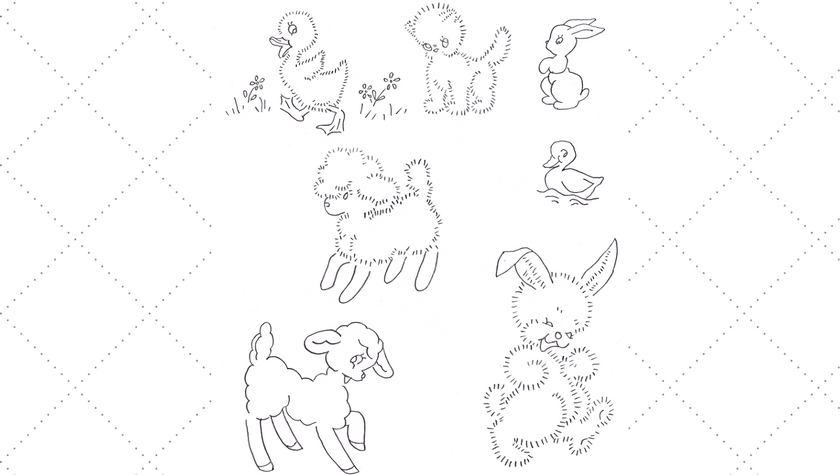 Which brings us to today’s free vintage Workbasket pattern. Dave went through all the patterns in our collection and traced out some spring babies for you to stitch.