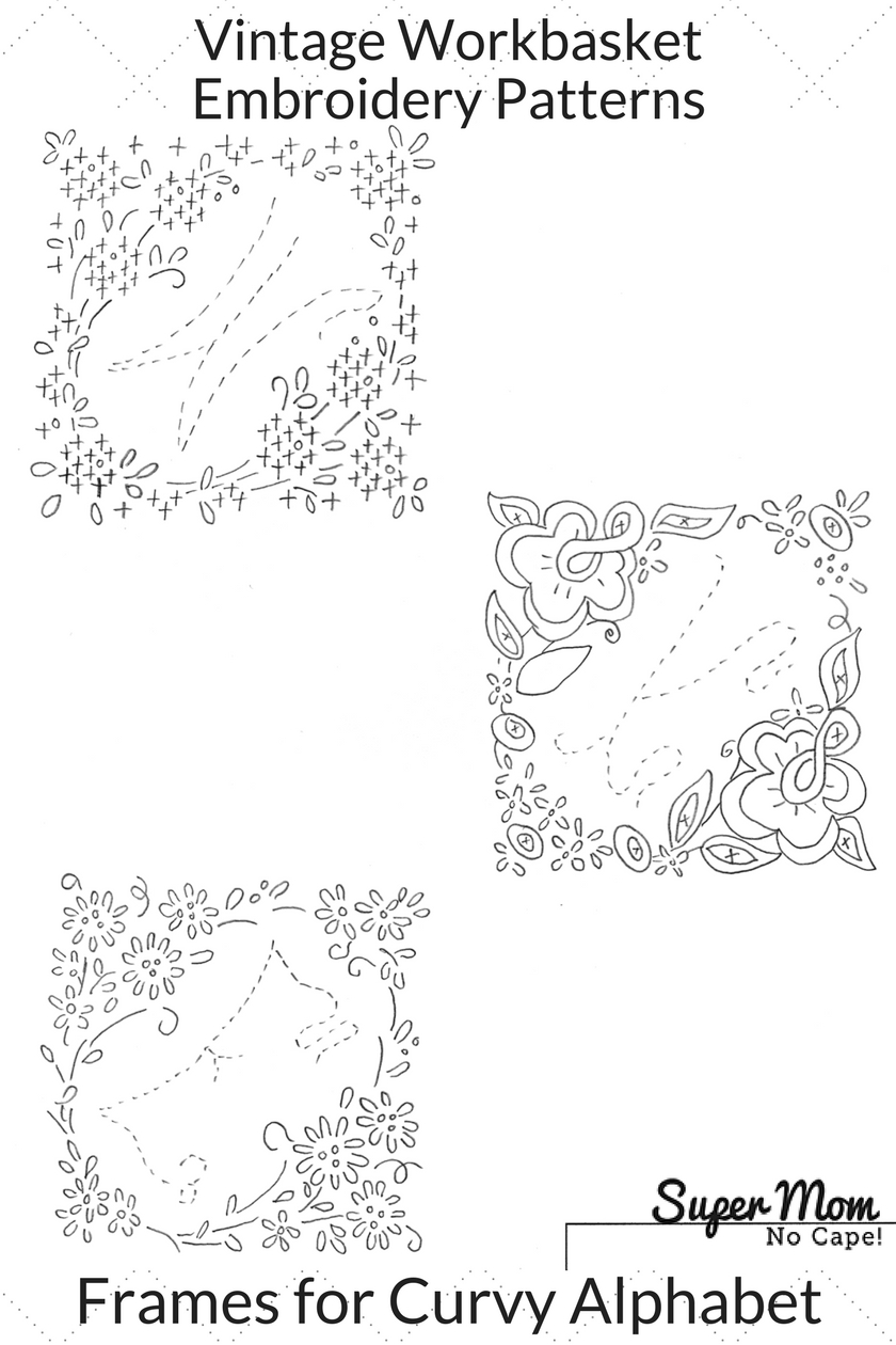 Vintage Workbasket Embroidery Pattern – Frames for Curvy Alphabet downloadable PDF.