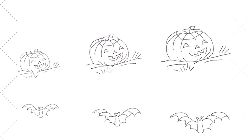 On the original vintage Workbasket pattern this jack o’lantern and bat were the small versions. With a bit of computer magic Dave enlarged them to give you two more sizes to choose from.