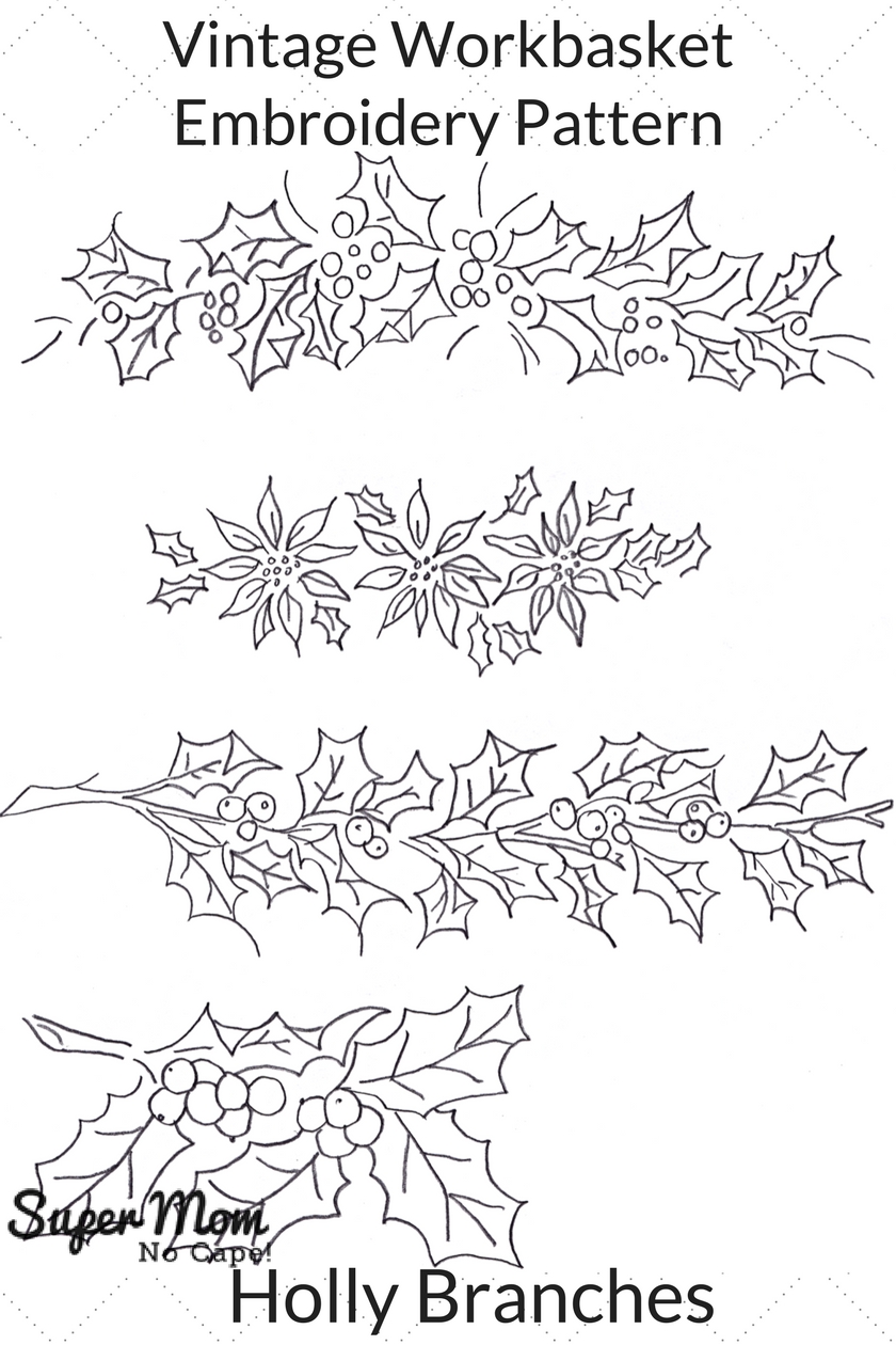 Vintage Workbasket Embroidery Pattern – Holly Branches downloadable PDF.