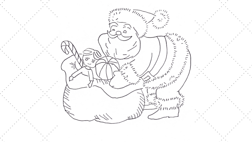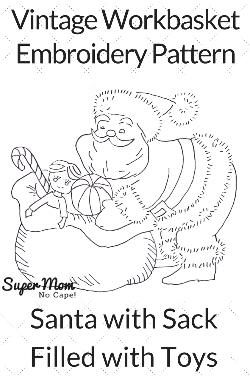 Vintage Workbasket Embroidery Pattern – Santa with Sack Filled with Toys downloadable pdf