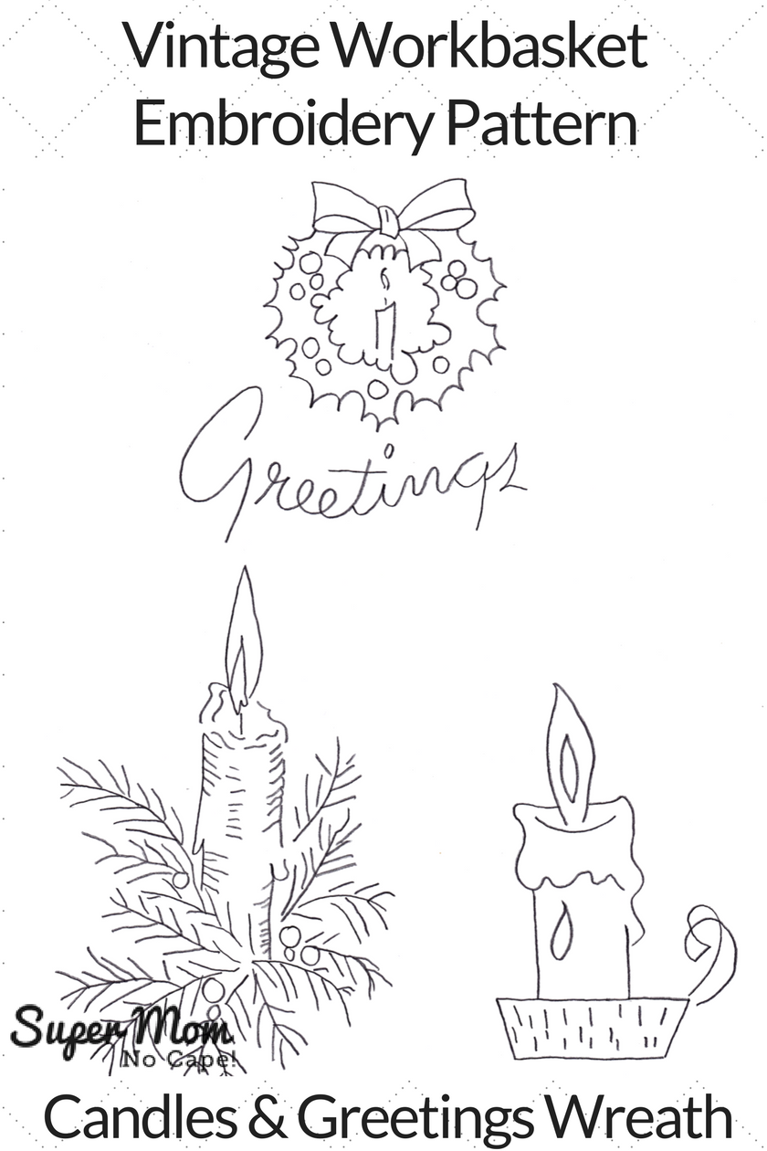 Vintage Workbasket Embroidery Pattern – Candles & Greetings Wreath downloadable PDF