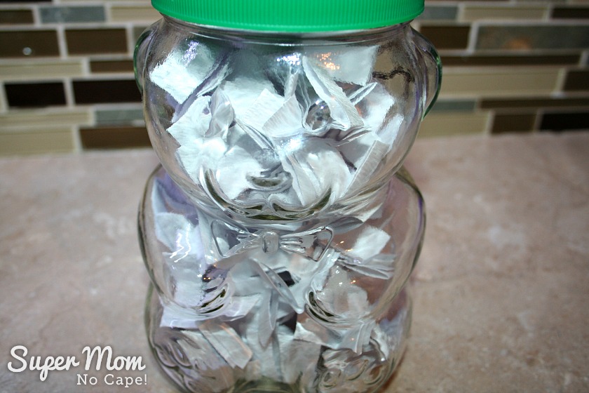 The names of everyone who entered by commenting on the 9th Anniversary Giveaway post were put into the teddy bear jar.