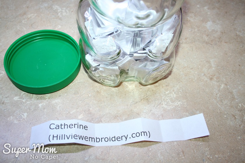 Each time someone linked up or commented on those posts, they received any entry. After the giveaway closed all the names were put in a jar.