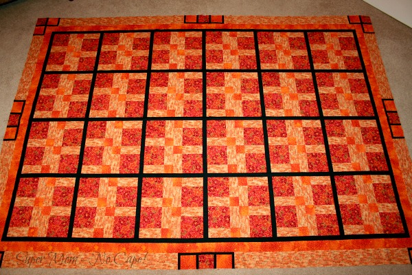 From the distance needed to get the whole quilt in the photos, it’s difficult to see the fabrics I used so here is a close-up of one of the blocks: