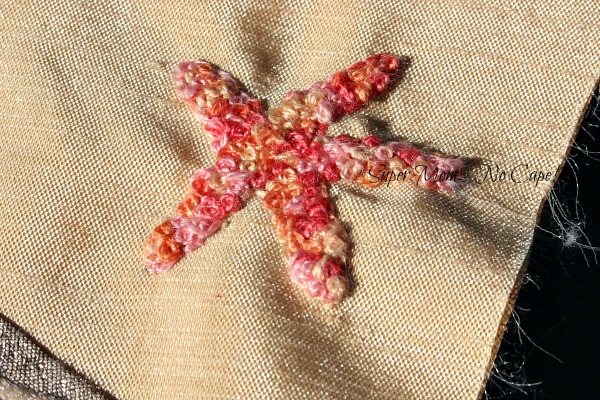 When I was trying to draw the sea star on the sea bottom I couldn’t get it looking the way I wanted, so our middle daughter drew it for me so that the arms look like it’s crawling over the sand. Before embroidering it, I checked out photos of sea stars that can be found in Hawaii and then chose a variegated floss in those colors to stitch it with.